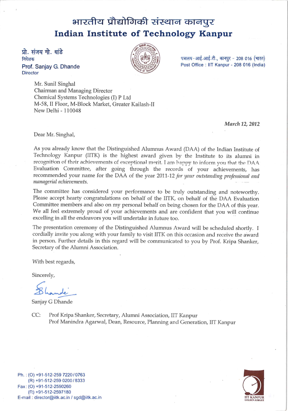 President, IIT Kanpur Alumni Association, Delhi Chapter
