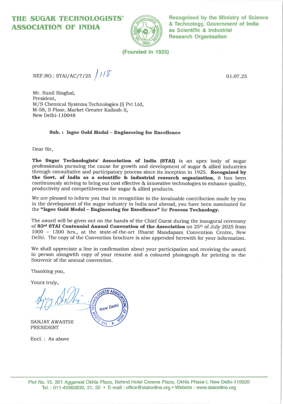 A topper of the IIT-JEE and an alumnus of IIT Kanpur (B.Tech, Chemical Engineering, 1971), Mr. Singhal began his career with global chemical multinationals in Southeast Asia. In 1986, he founded CST to adapt advanced global technologies to Indian needs, making legacy industries more circular, efficient, and future-ready.