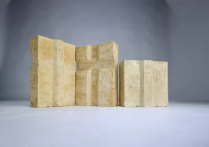 The blocks interlock, minimizing wall displacement in case of seismic activity. The groove minimizes the lime mortar required for wall assembly.